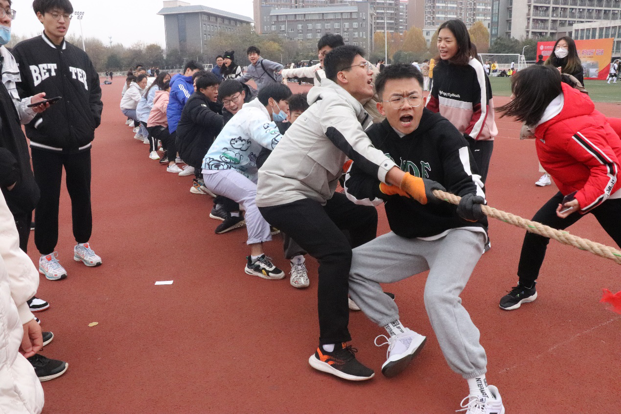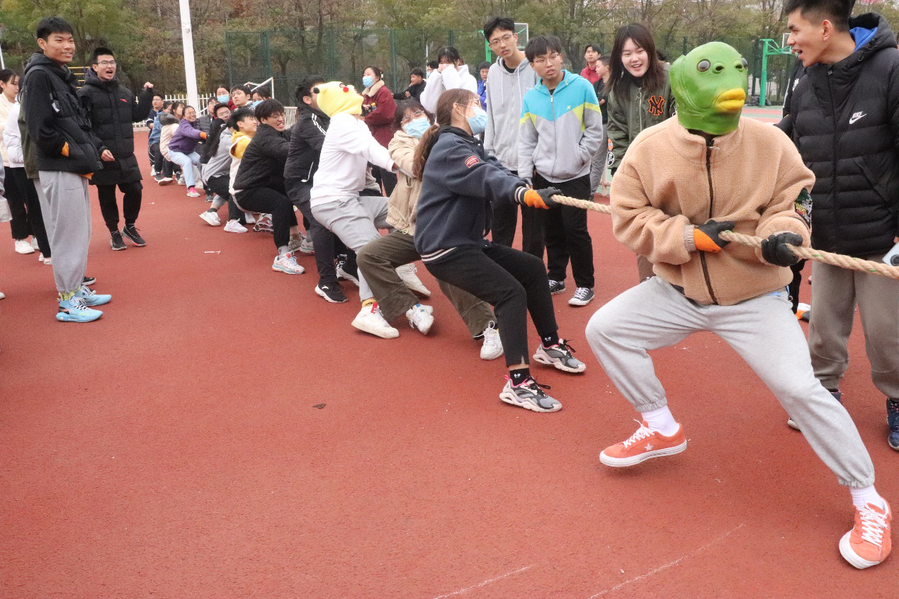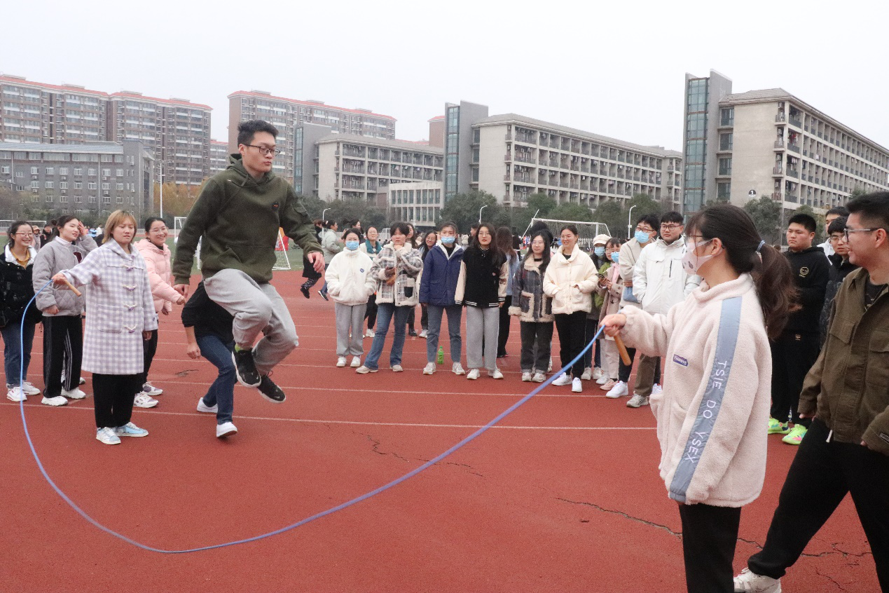 此次趣味运动会以倡导“德智体美劳全面发展”的育人理念,增强学生之间的交往和协作,激发学生的荣誉感和上进心,培育和提高班级的凝聚力和向心力为目标,共设有八字跳绳和拔河两个项目。趣味运动会紧凑有序的进行,所有参赛班级共分为六组,各组按照顺序依次进行比赛。比赛期间,同学们秉持着“友谊第一,比赛第二”的理念,充分展现团队精神,互助友爱,奋勇拼搏。跳绳比赛中,两名摇绳队员把握节奏,跳绳队员排列有序,以最快速度成八字形来回穿梭于绳索之间,洋溢着满满竞技热情。在拔河项目中,各队队员竭尽全力,赛出水平,现场观众紧握拳头,呐喊助威,一度将运动会带上高潮。除此之外,有些参赛选手在拔河比赛过程中借助各具特色的面具来鼓舞队伍士气,展示班级特色,得到了在场观众极大的关注,为比赛添加了一抹亮色。经过几小时的努力拼搏,运动会渐渐落下帷幕,各项目的比赛结果也逐步公布。此次运动会赛出了水平、赛出了风格、赛出了友谊,最终210301、200307、200304班取得跳绳比赛前三名,200304、200308、210302班取得拔河比赛前三名。