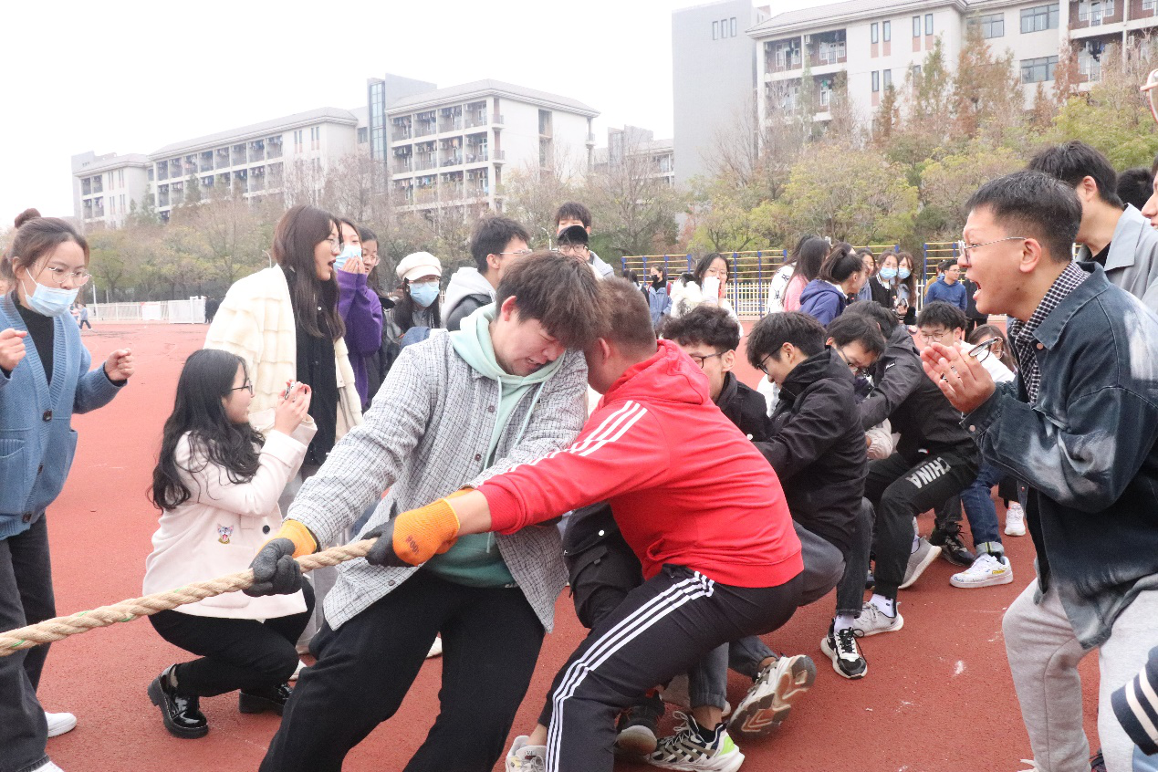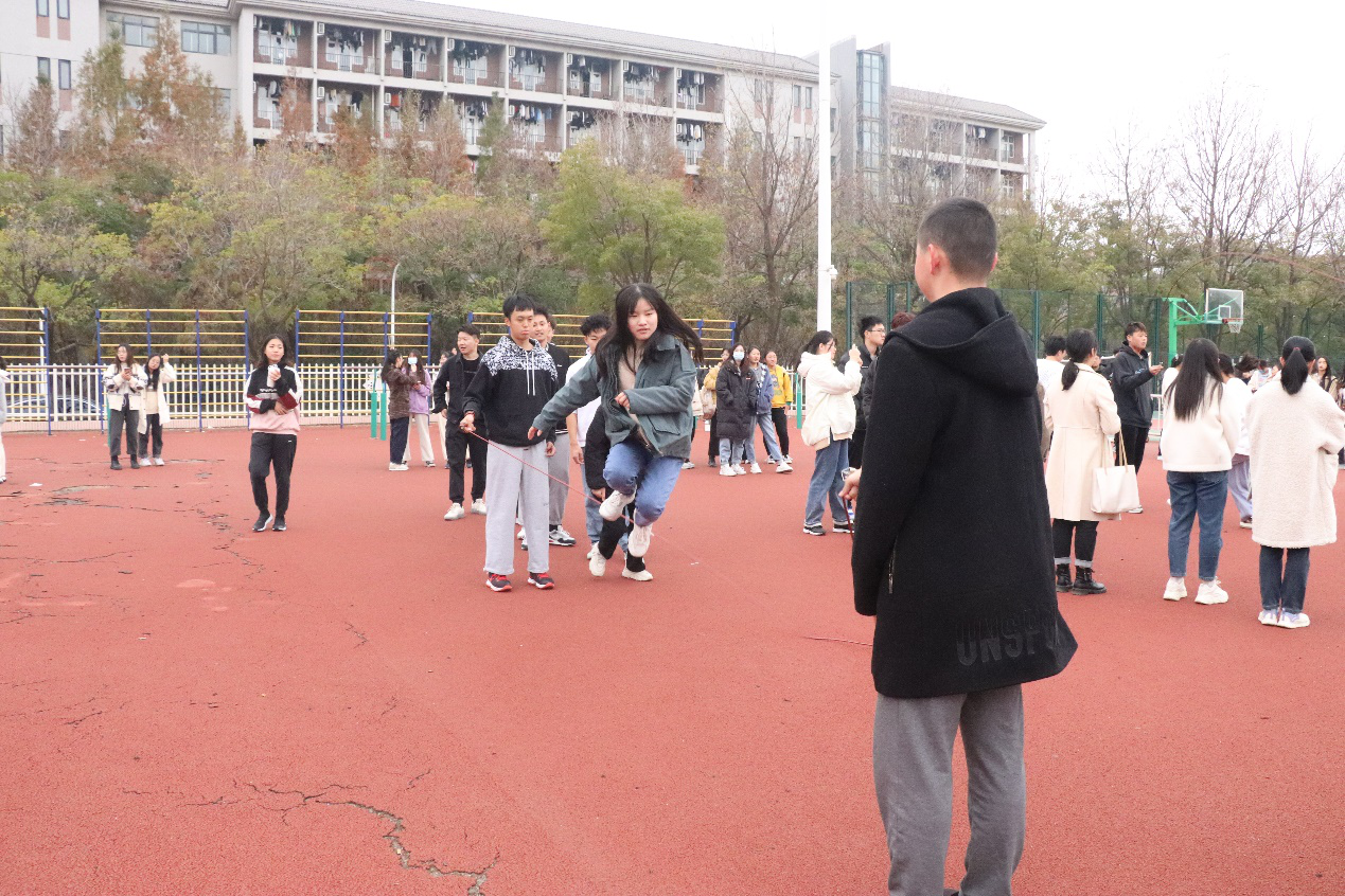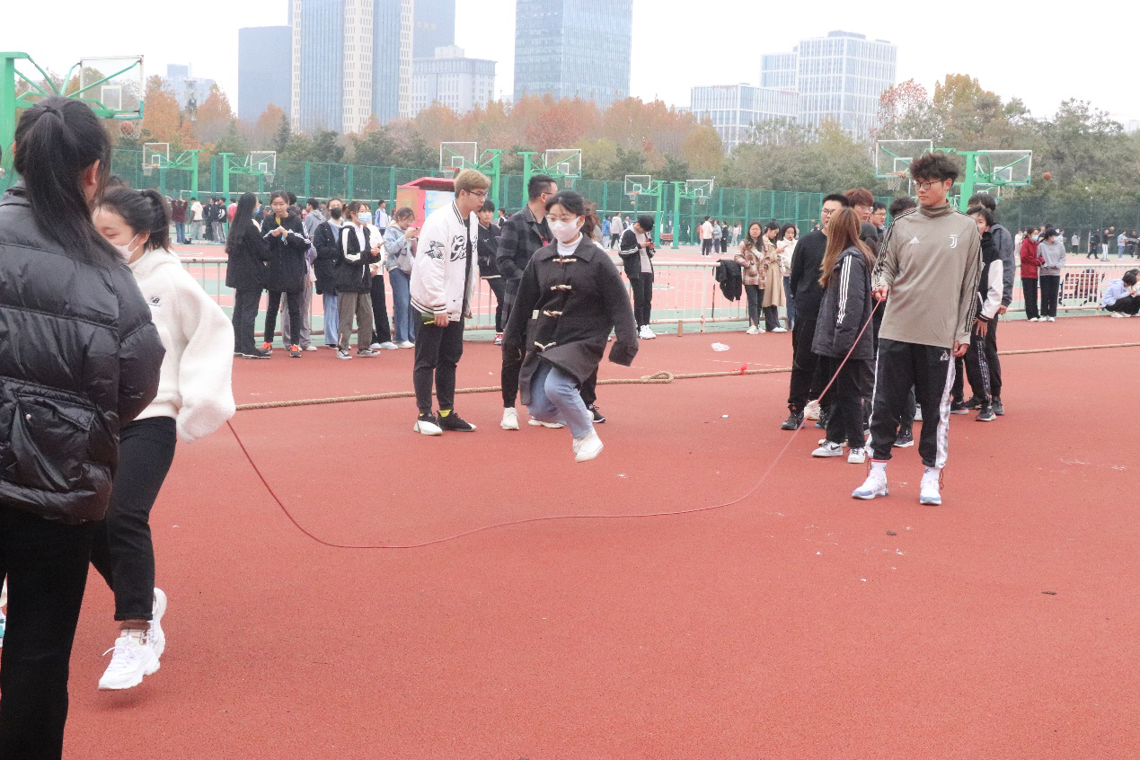 此次趣味运动会以倡导“德智体美劳全面发展”的育人理念,增强学生之间的交往和协作,激发学生的荣誉感和上进心,培育和提高班级的凝聚力和向心力为目标,共设有八字跳绳和拔河两个项目。趣味运动会紧凑有序的进行,所有参赛班级共分为六组,各组按照顺序依次进行比赛。比赛期间,同学们秉持着“友谊第一,比赛第二”的理念,充分展现团队精神,互助友爱,奋勇拼搏。跳绳比赛中,两名摇绳队员把握节奏,跳绳队员排列有序,以最快速度成八字形来回穿梭于绳索之间,洋溢着满满竞技热情。在拔河项目中,各队队员竭尽全力,赛出水平,现场观众紧握拳头,呐喊助威,一度将运动会带上高潮。除此之外,有些参赛选手在拔河比赛过程中借助各具特色的面具来鼓舞队伍士气,展示班级特色,得到了在场观众极大的关注,为比赛添加了一抹亮色。经过几小时的努力拼搏,运动会渐渐落下帷幕,各项目的比赛结果也逐步公布。此次运动会赛出了水平、赛出了风格、赛出了友谊,最终210301、200307、200304班取得跳绳比赛前三名,200304、200308、210302班取得拔河比赛前三名。