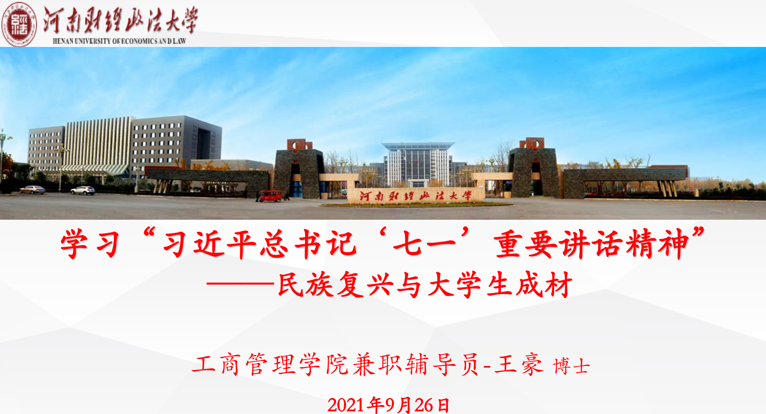2019级兼职辅导员王豪、辅导员赵绍春做“践行习近平总书记七一讲话精神,做新时代目标明确的大学生”主题宣讲