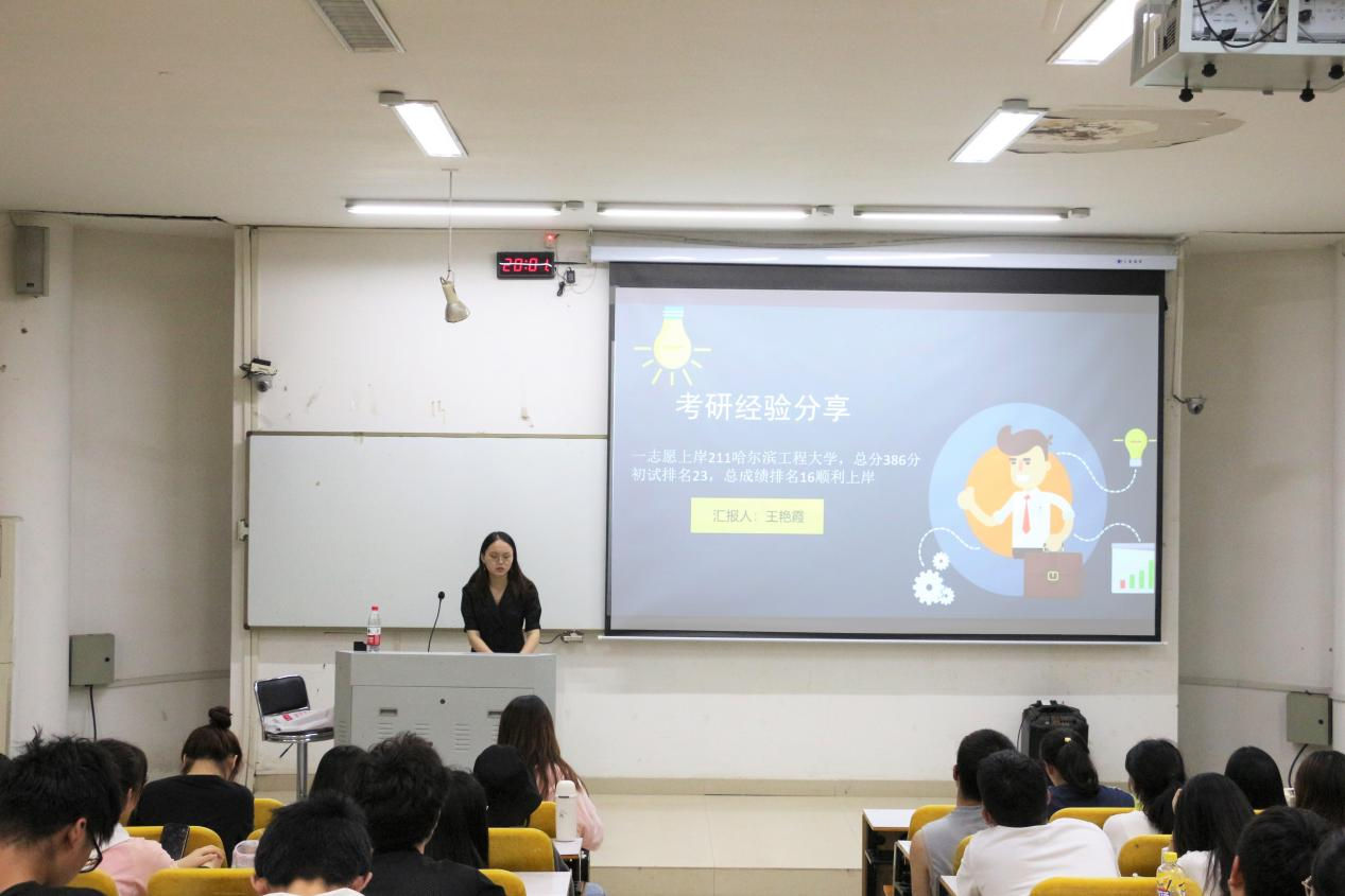 为了进一步激发考研学子的学习热情、明确考研目标、了解考研信息、掌握考研技巧。5月18日晚,伟德体育官网于教二-119教室举办了考研助推交流会,七位2017级考研上岸的优秀学子受邀为主讲人,与同学们分享考研经验,2018级、2019级一百余名学生到场聆听。