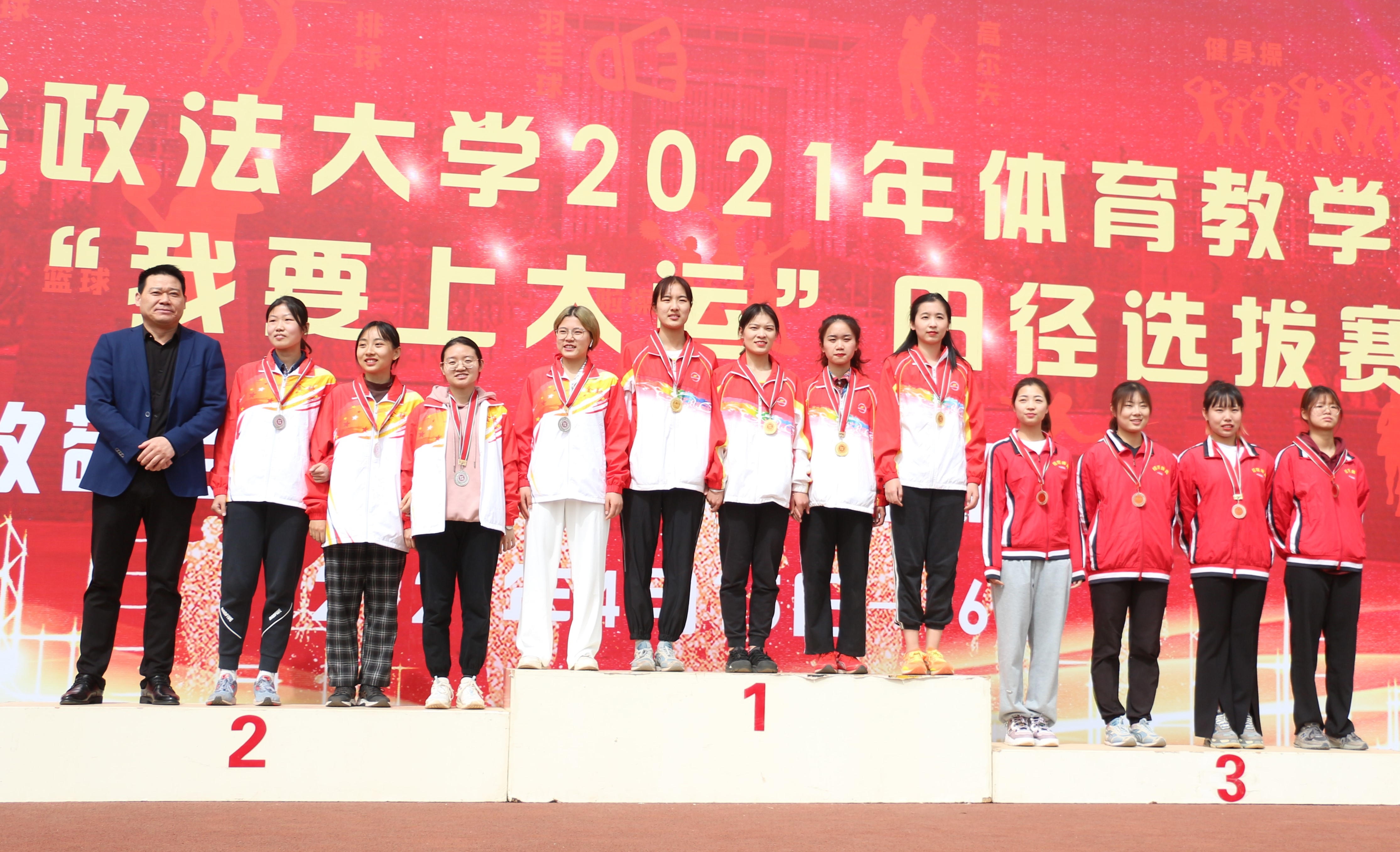 4月10日—11日、15—16日,“伟德体育官网,BV伟德官方网站2021年体育教学交流赛暨‘我要上大运’田径选拔赛”(第11届校运会)分阶段在郑东校区东、西体育场举行。伟德体育官网学生参加了表演类项目、集体项目以及田径等所有项目的竞赛,参赛学生达300余人。在运动会备战和比赛期间,同学们秉承德智体美劳全面发展理念,发扬集体主义精神,齐心协力,坚持训练,奋勇拼搏,最终以483.7分总分第一的成绩第九次夺得校运会冠军,同时获得田径女子团队总分第一名和男子团队总分第二名,彰显了伟德体育官网学生团结进取、昂扬向上的精神风貌。