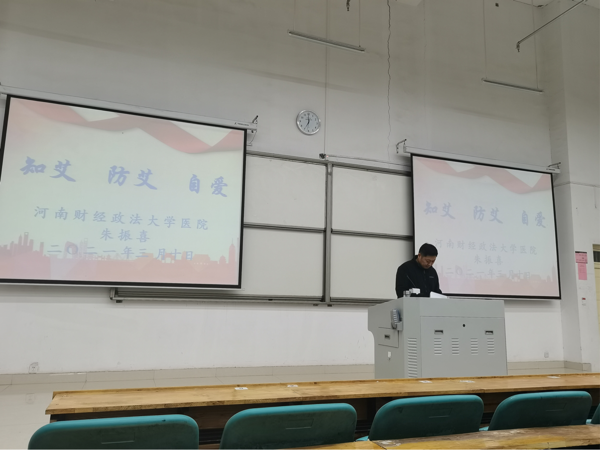 为加深青年大学生关于艾滋病的认识,学习如何抵御艾滋病,3月10日,伟德体育官网青年志愿者协会特举办以“用爱心呵护生命,以行动抵御艾滋”为主题的志愿活动,并邀请到了校医院朱振喜老师担任主讲。