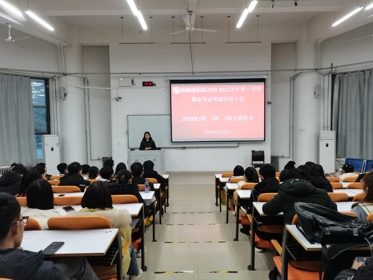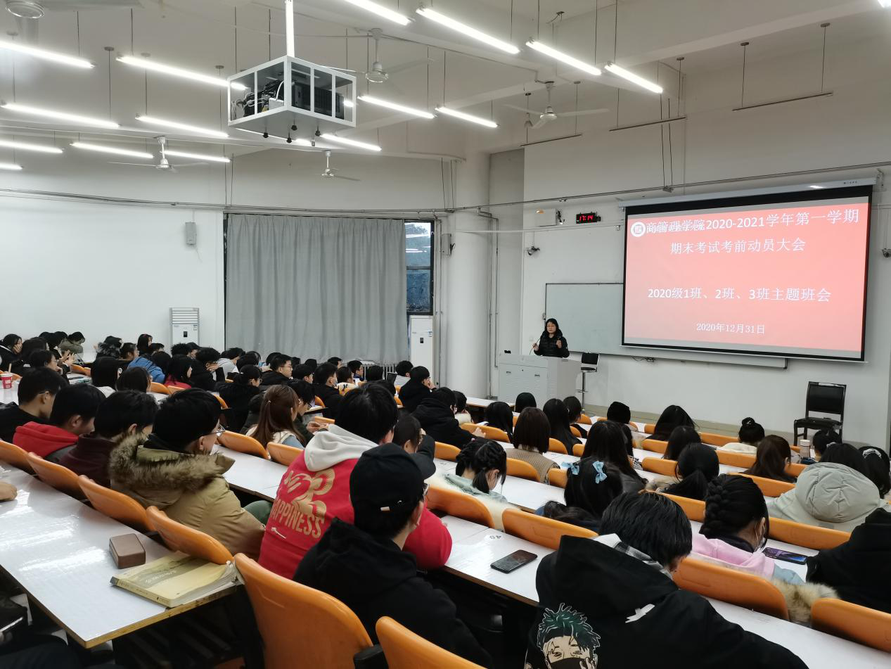 为进一步加强学风建设,端正考风、严肃考纪,营造严肃公平诚信的良好考试氛围,12月31日,伟德体育官网在两个校区分别组织2018级、2019级和2020级全体学生,召开2020-2021学年第一学期期末考试考前动员大会。学院党委副书记赵辉、副院长王文超,团委书记赵绍春以及各年级辅导员深入会场做考前动员。