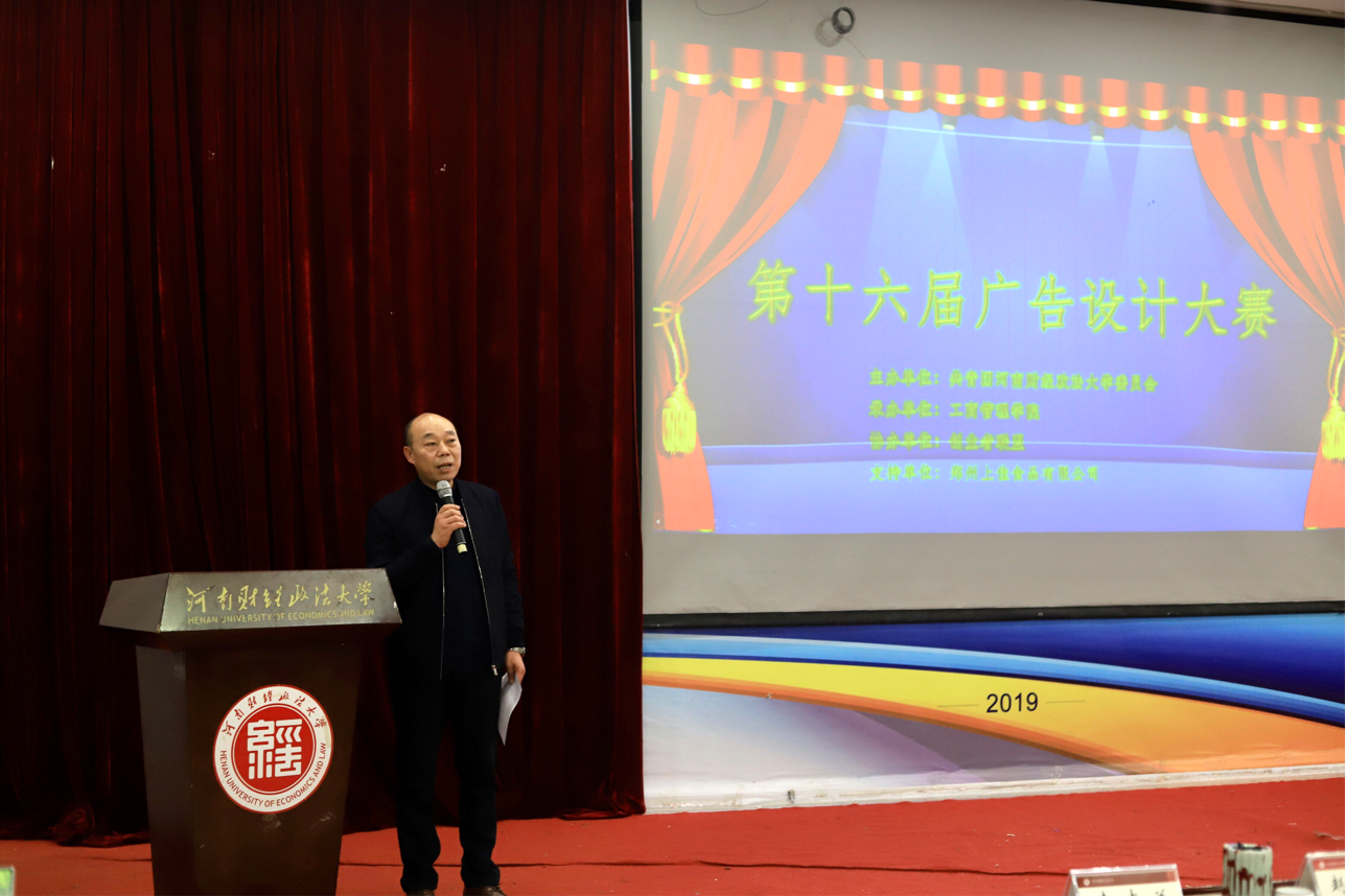 12月28日晚,由校团委主办,伟德体育官网承办的伟德体育官网,BV伟德官方网站第十六届广告设计大赛于教1-220报告厅拉开帷幕。伟德体育官网党委书记孙向东、院长牛全保,校团委副书记肖天乐,河南上佳食品有限公司董事长、校友李战胜,学院党委副书记赵辉、副院长王文超等领导老师莅临现场,学院师生200余人到场观摩学习。