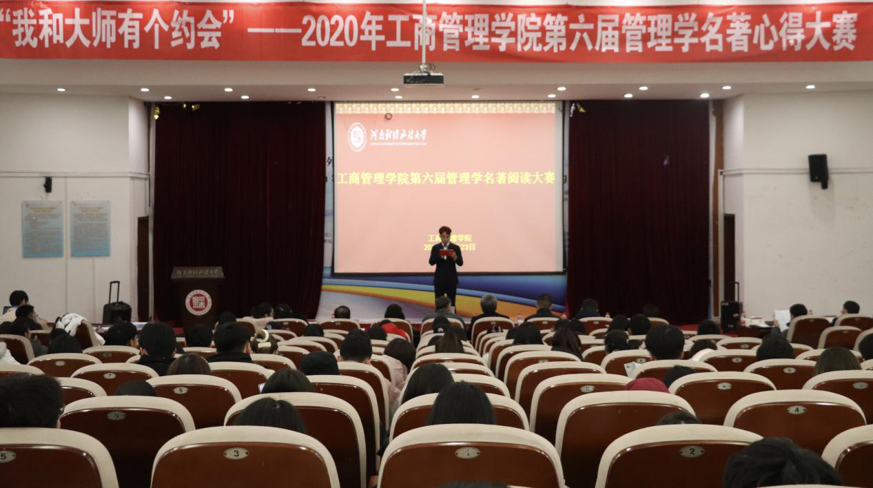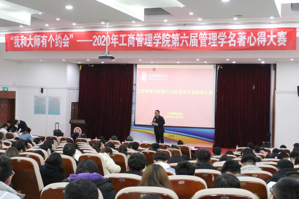 12月23日晚,伟德体育官网于第一教学楼220报告厅举办第六届“我和大师有个约会”——管理学名著阅读心得大赛。学院党委书记孙向东、院长牛全保,党委副书记赵辉,副院长蔡树堂、王文超及部分教研室老师作为评委出席本次大赛,240余名学生观看比赛。