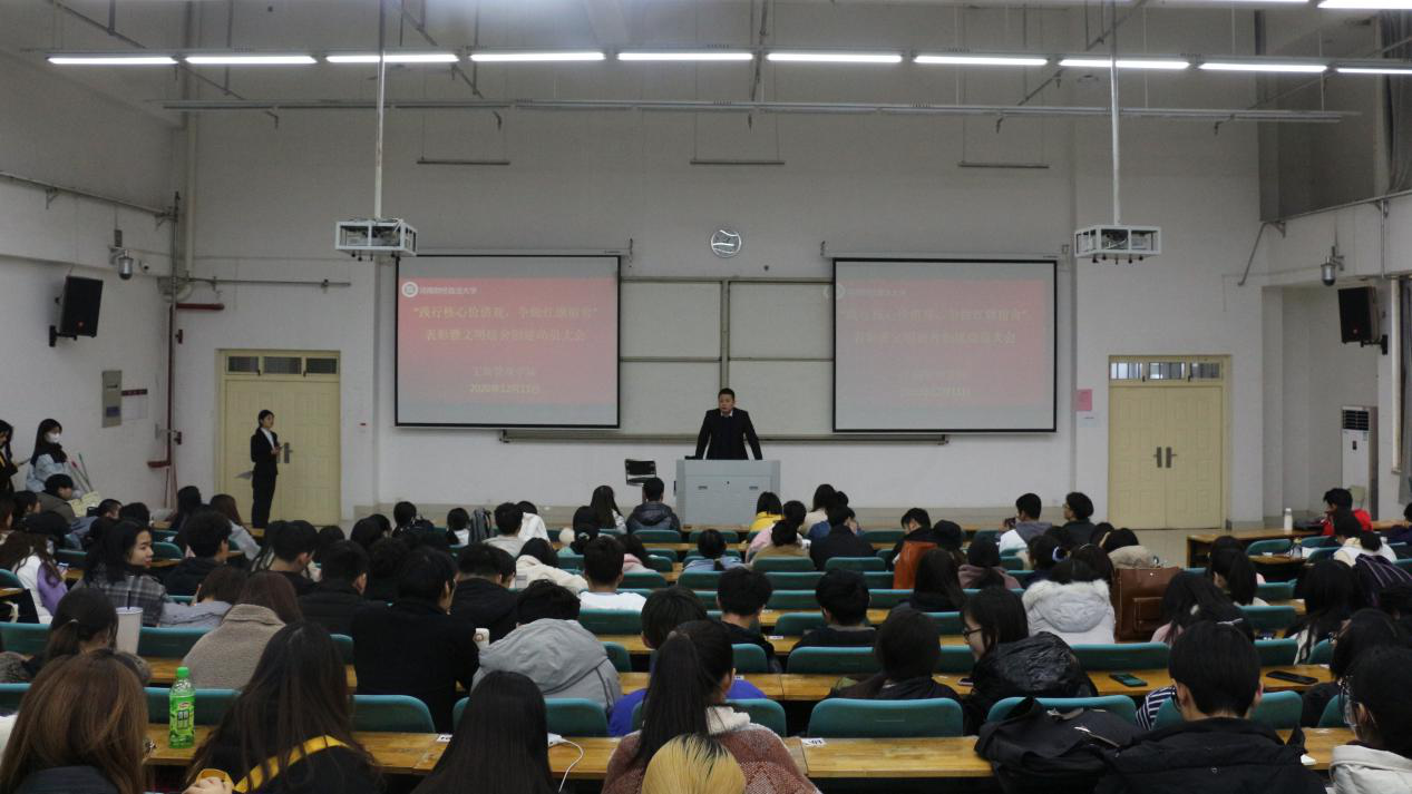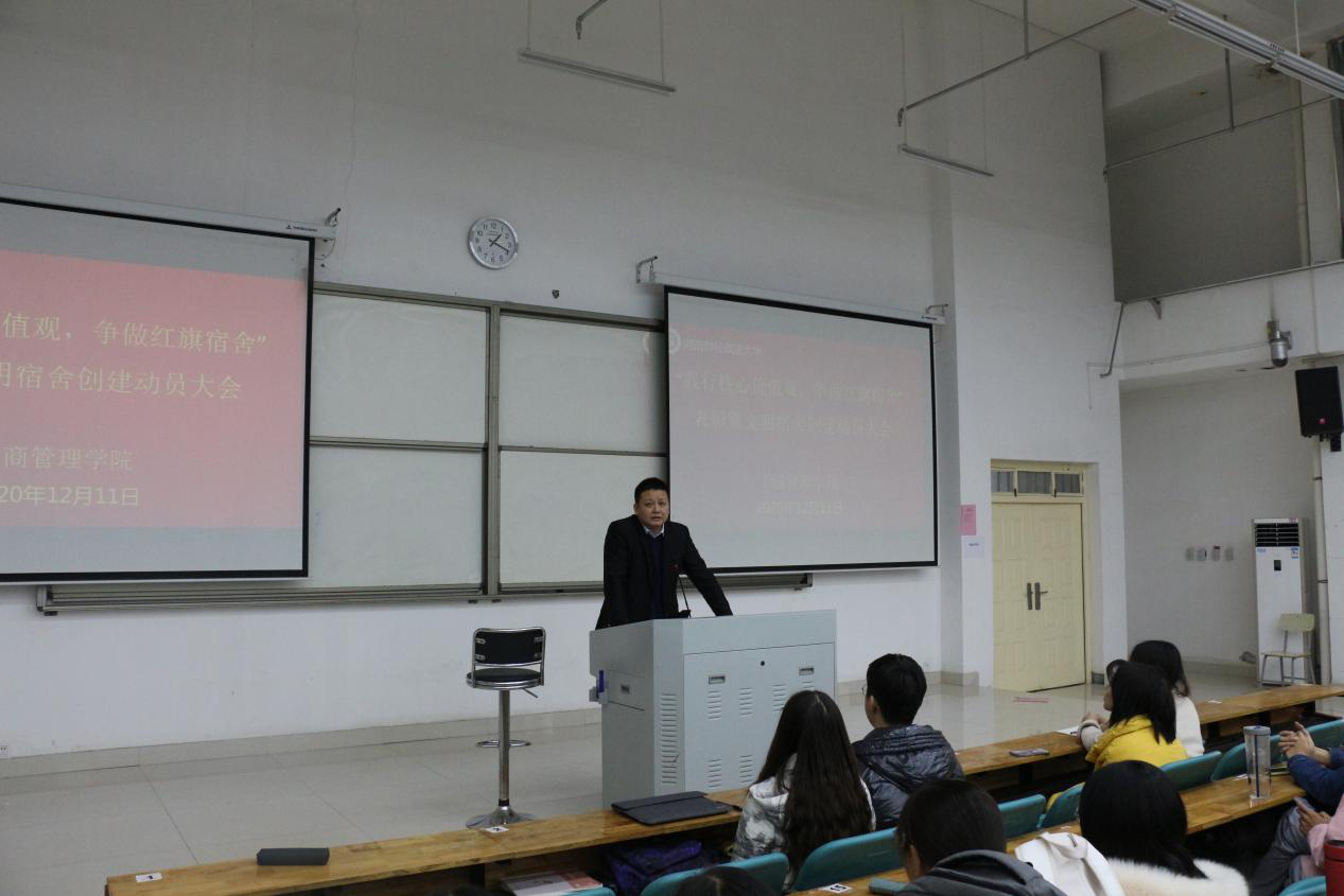 12月11日中午,伟德体育官网在教科楼B座210教室召开“践行核心价值观,争做红旗宿舍”表彰暨文明宿舍创建动员大会。学院团委书记赵绍春莅临现场,200余名学生参加会议。