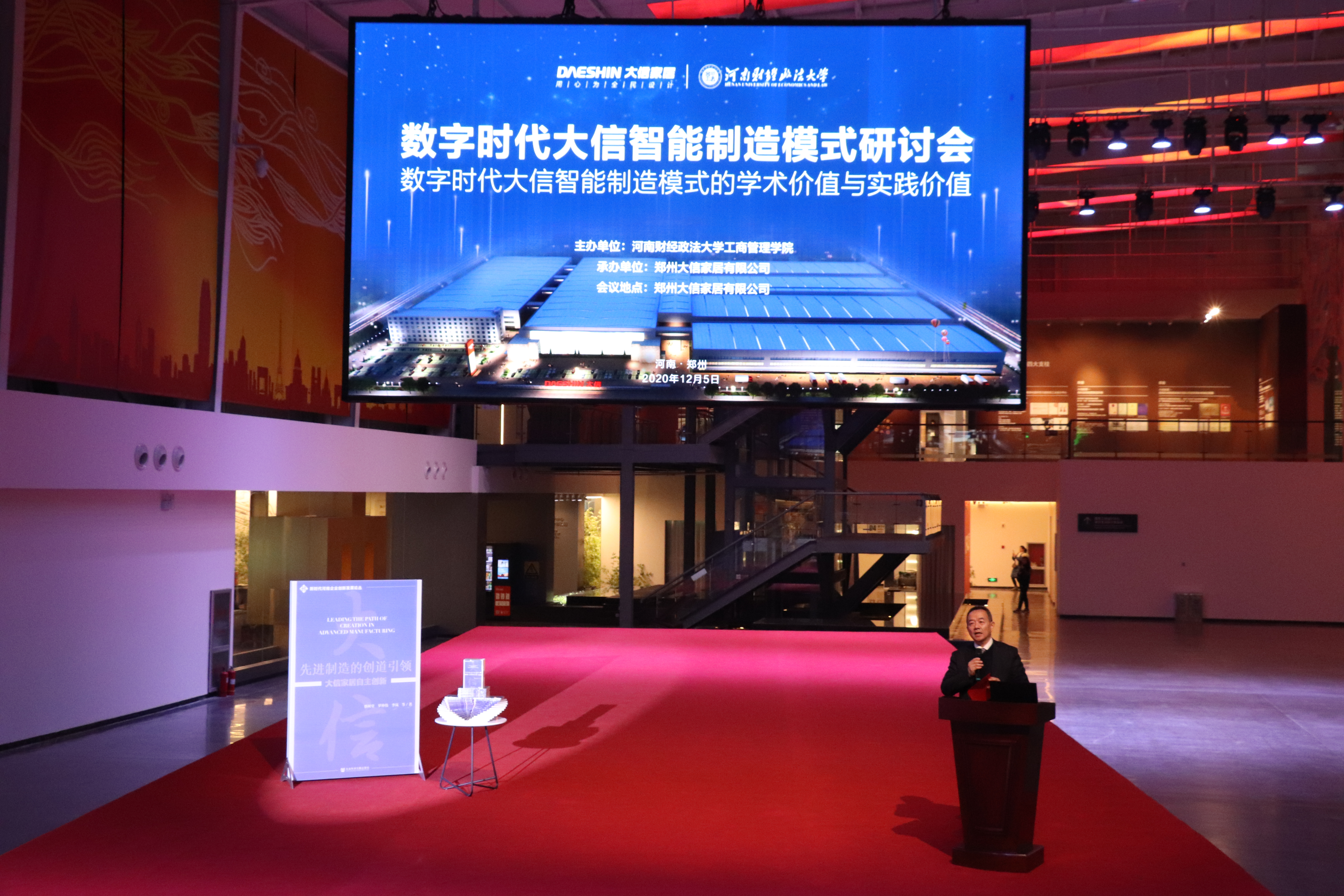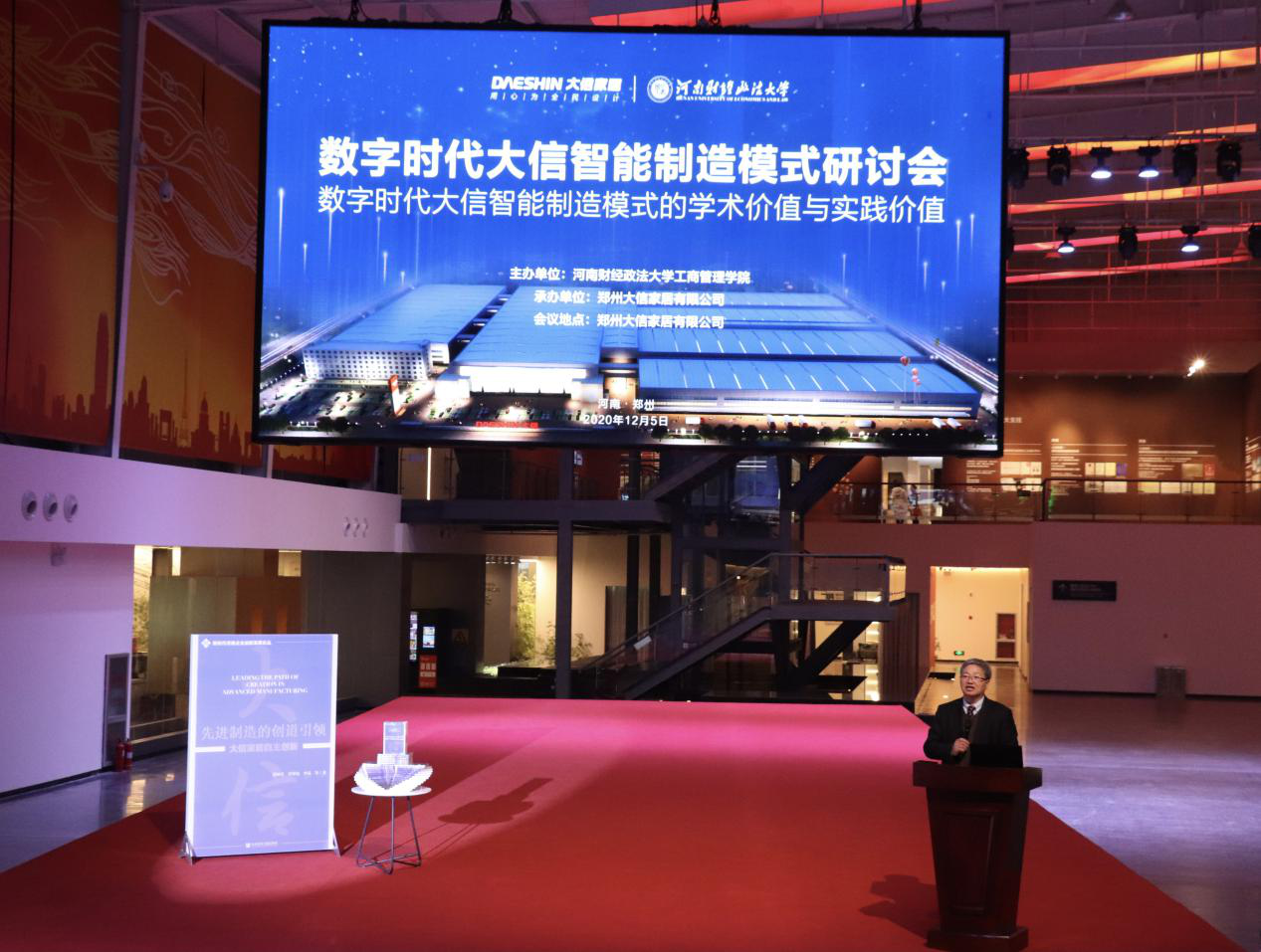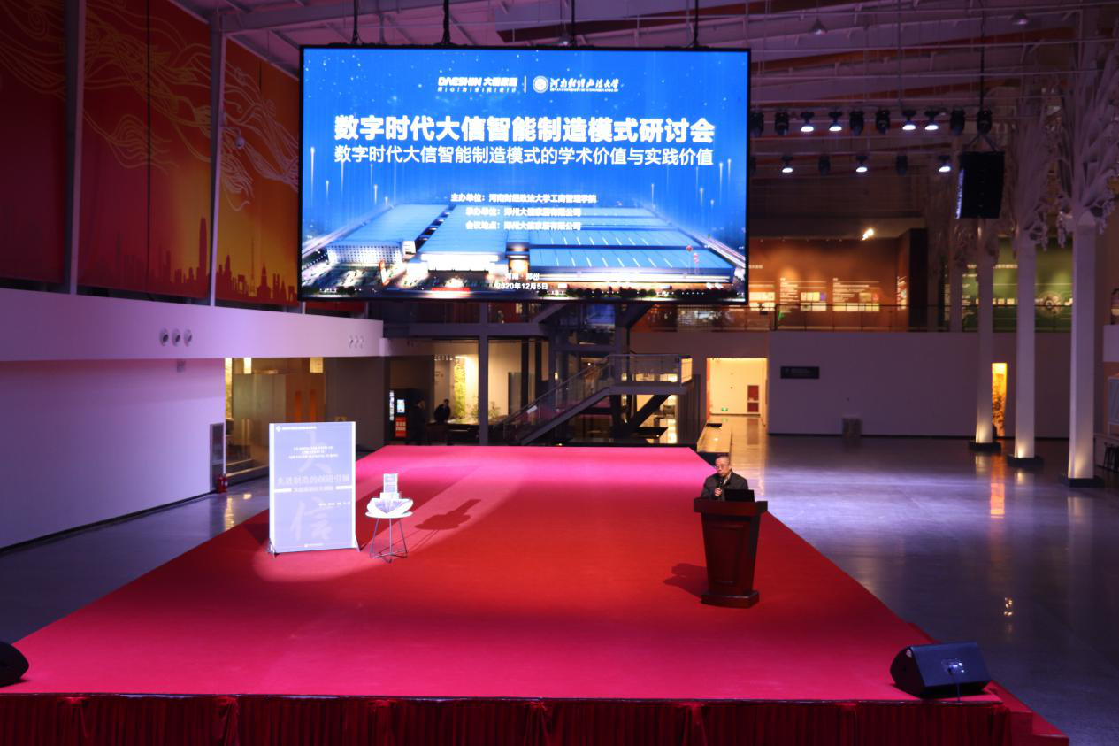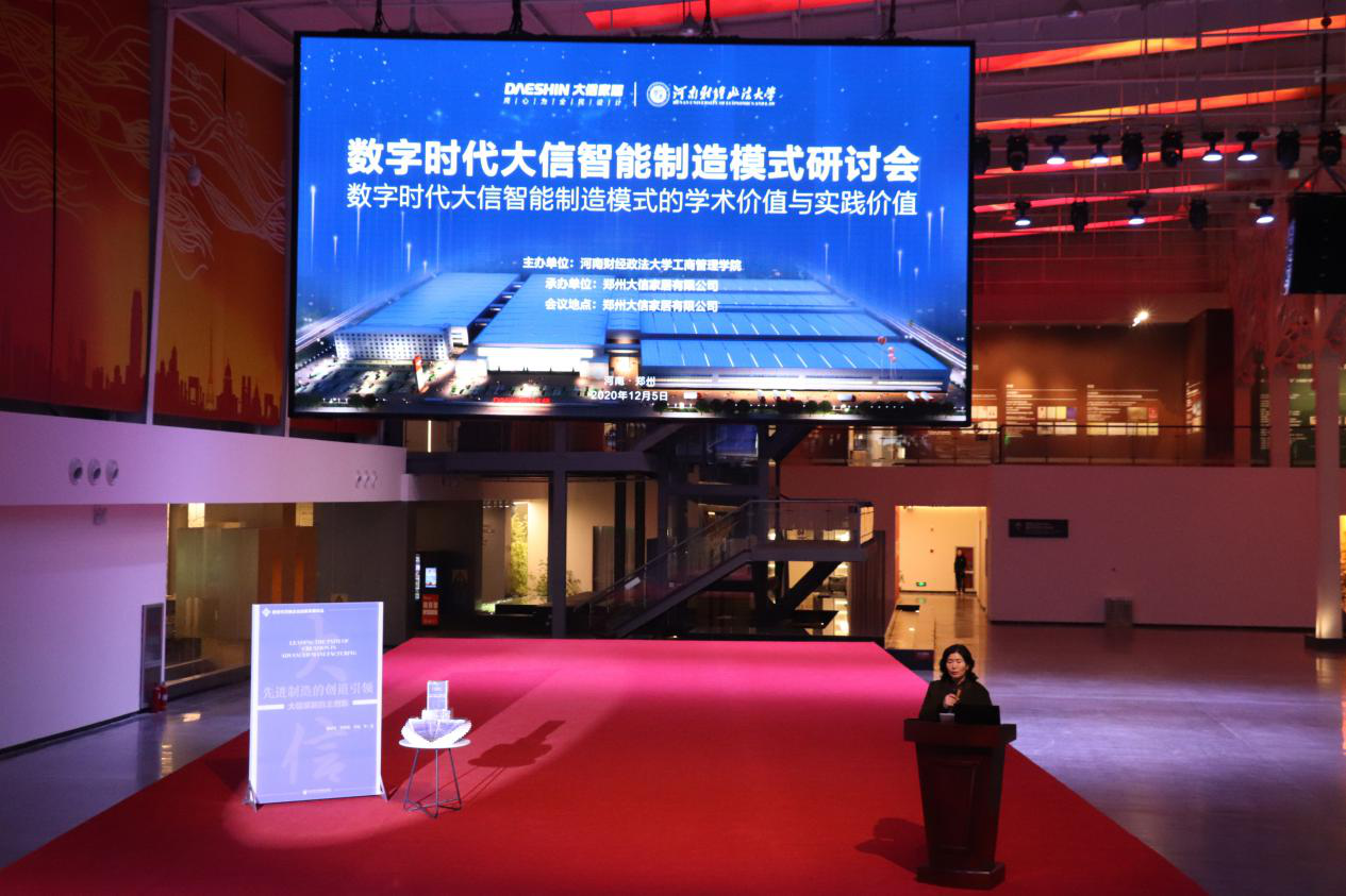 2020年12月5日下午,“数字时代大信家居智能制造模式研讨会暨《先进制造的创道引领——大信家居自主创新》新书发布会”在郑州大信家居有限公司隆重召开。我校副校长、工商管理学科协调人薛玉莲教授出席研讨会并致辞。会议由我校工商管理学科负责人、院长牛全保教授主持。出席会议的还有中国社会科学院数量经济与技术经济研究所副所长李海舰研究员、河南省工业和信息化厅副厅长杨新生和全国工商联家具装饰业商会秘书长张仁江。会议采取线下研讨、线上直播的方式进行。线下研讨参会人员有高校师生和企业家代表共100余人,通过线上各网络平台收看的参会人数达10万人。