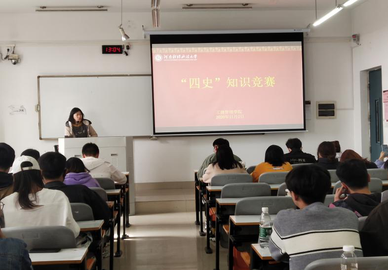 前期,党员们通过视频和学习材料认真学习“四史”知识,回顾和感受我们党的拼搏奋斗历程、新中国的发展壮大、改革开放的辉煌成就和社会主义的强大生命力,从历史中汲取精神力量,厚植爱国情怀。11月3日在教2—412教室,51名正式党员及预备党员开展“四史”知识答题竞赛。竞赛采取10人一组,自由组合,计时抢答的方式进行。题目涵盖四史主要内容,设置有单项选择题、多项选择题、判断题及辩析题。比赛中,大家竞相抢答,气氛热烈。经过激烈角逐,第四组成员程荣格、侯倩、魏开宇、陈阳等十名同学胜出。